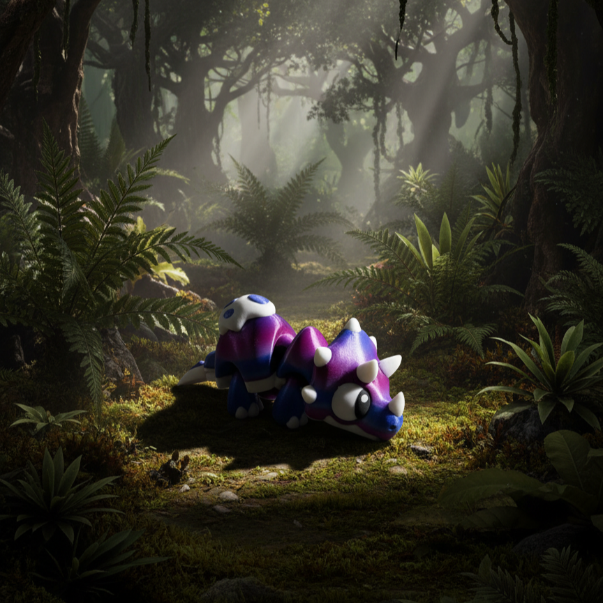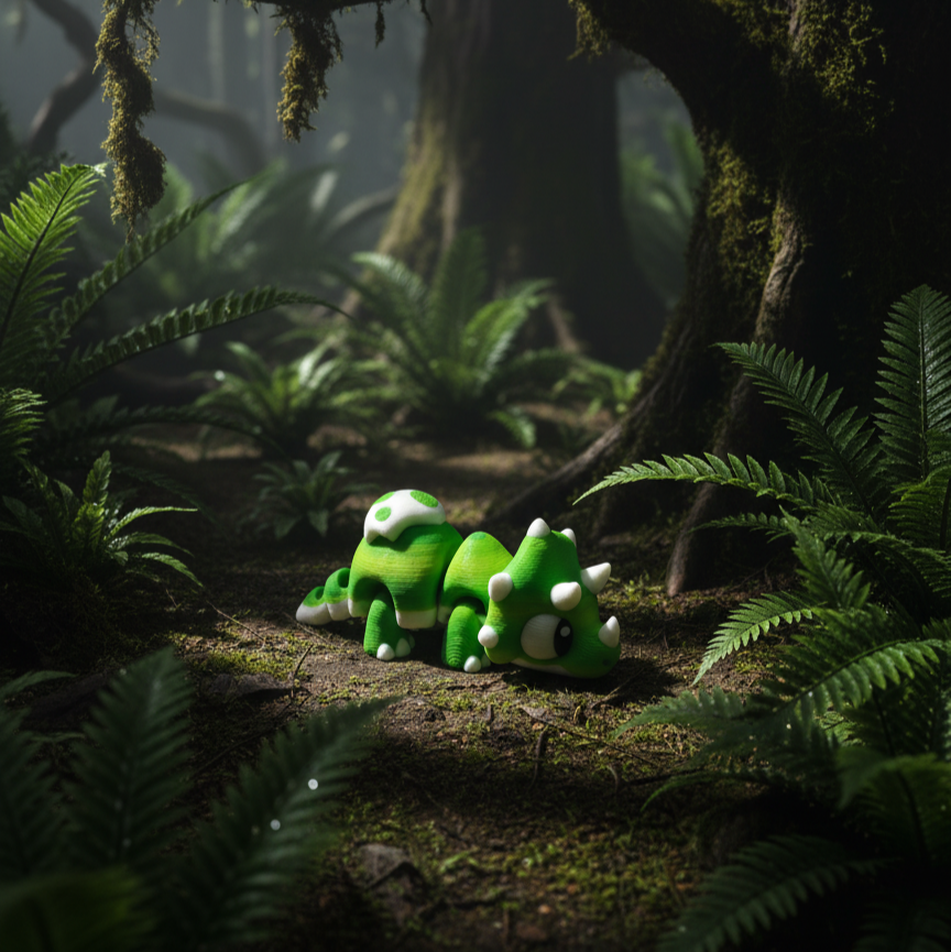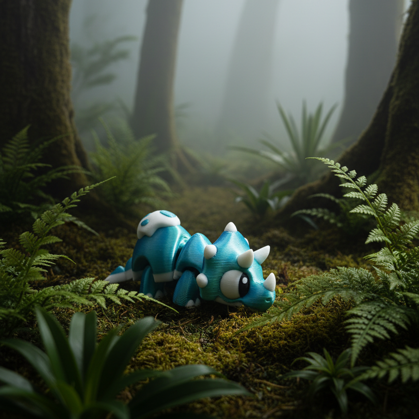 Denne skønne og meget detaljerede baby Triceratops er 3D-printet i høj kvalitet.