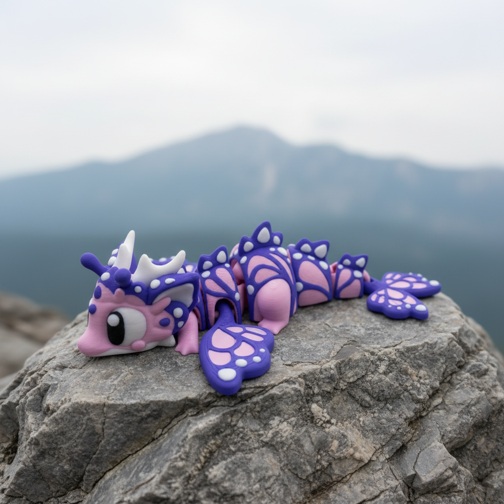 Denne 3D-printede Butterfly Dragon Big er inspireret af sommerfuglens lette og organiske former kombineret med klassiske drage elementer. De store, detaljerede vinger og de bløde linjer langs kroppen giver figuren et let og harmonisk udtryk med masser af personlighed.