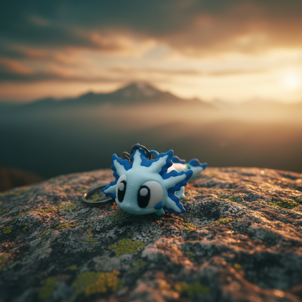 Denne 3D-printede Flexi Baby Axolotl er en sød og karakterfuld figur inspireret af det specielle lille vanddyr med de bløde gæller og det venlige smilende ansigt. Den runde hovedform, de tydelige gæller og den kompakte krop giver figuren et roligt og venligt udtryk.